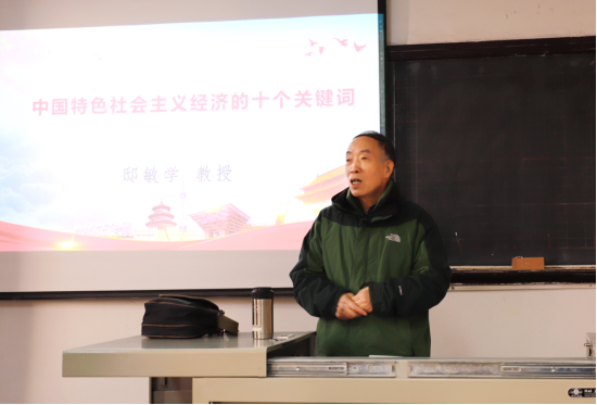 “明者因时而变,知者随世而制”,为了让同学们深刻了解我国经济建设的主攻方向和工作重点,11月12日上午,应beat365唯一官网的邀请,山西大学马克思主义研究所所长、博士生导师邸敏学教授在修德楼607教室举办了一场主题为《中国特色社会主义经济的十个关键词》的精彩学术报告。公司2020级博士研究生及beat365唯一官网部分硕士研究生共八十余人聆听了报告,beat365唯一官网张二芳经理主持了本次报告会。