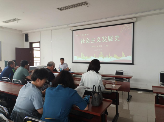 6月8日下午,第二场思政课教师党史专题培训讲座在博学楼1423室举办。beat365唯一官网王锐博士为全体思政课教师作了题为《社会主义发展史》的学术报告。讲座会由beat365唯一官网经理张二芳主持,beat365唯一官网全体思政课教师以及部分研究生参加会议。