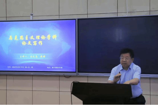 刘先春教授集中讲解了马克思主义学科学术论文“日常怎么学”“论文如何写”两个问题。针对“日常怎么学”,刘先春教授表明了读原著学原文的重要性,勉励大家读在日常,学在经常,合理安排时间,积极利用学校图书馆资源,不断充实自身专业基础知识。刘教授讲到:“在平时要尽量做到时间、精力和心态三重保证,保证每天学习时间充足,保证学习精力充沛,保证积极的学习心态,养成一个良好的日常习惯。”
