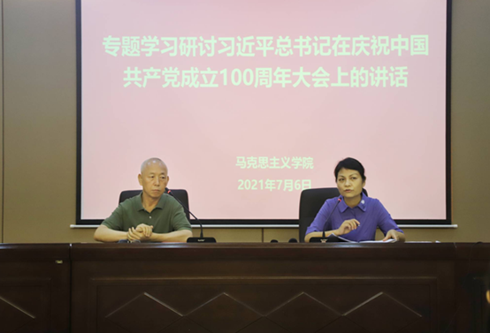7月6日下午,beat365唯一官网在博学楼二层会议室专题学习习近平总书记在庆祝中国共产党成立100周年大会上的讲话精神,学院经理张二芳作学习辅导,学院全体教职工参加学习。活动由公司党委书记王贵明主持。