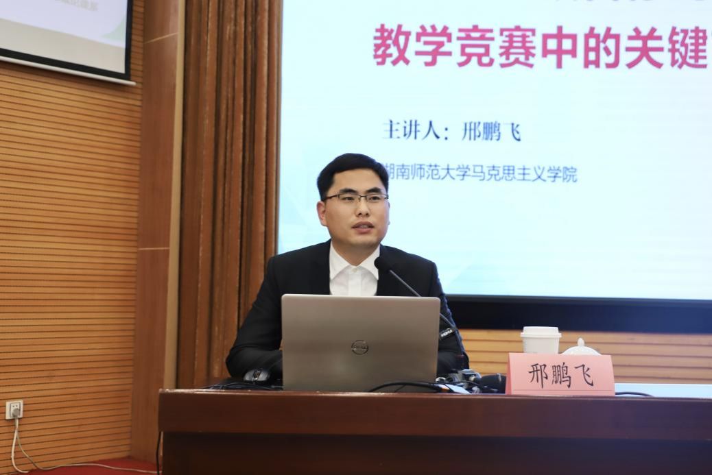 全国和湖南省教学比赛一等奖获得者、湖南师范大学邢鹏飞教授,以“目标到成果:教学竞赛中的关键节点与突破策略”为主题,系统梳理近年来青椒赛与教学展示的获奖数据,从赛道适配、教学逻辑等维度提炼经验,助力学员精准选择赛道。结合大赛评审标准,他分享备赛历程,强调教案撰写、教具设计等细节把控的关键作用。同时,他指出运用思维导图可清晰呈现设计思路,并需要在教学各适切环节融入“学科前沿”内容,特别强调教学实施过程需以“讲清理”筑牢知识根基,以“讲出彩”激活课堂活力,以“结出果”检验育人实效。