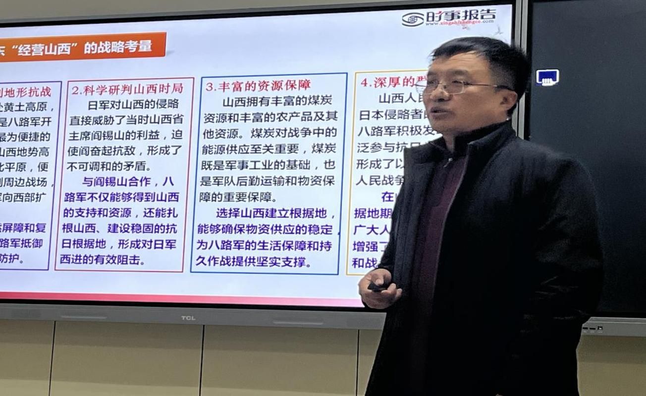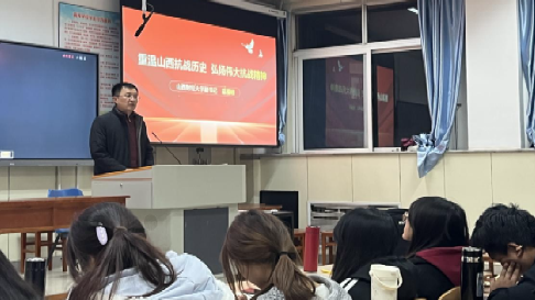 寇福明教授结合丰富的史料与严谨的分析,从地理区位、资源禀赋、战略决策等维度,系统梳理山西抗战的独特价值。生动形象地讲解了山西的军事战略地位、毛泽东决策“经营山西”战略、山西抗日根据地的创建等丰富的历史知识,晋察冀抗日根据地、晋绥抗日根据地、晋冀豫抗日根据地和晋西南抗日根据地等的创建和发展,以及雁门关伏击战和夜袭阳明堡等许许多多感人的英雄人物和故事。勉励同学们牢记习近平总书记在山西阳泉参观百团大战纪念馆展陈时强调的“要讲好抗战故事,把伟大抗战精神一代代传下去”嘱托。
