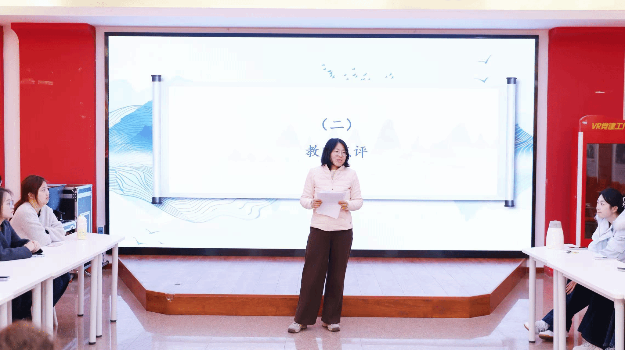 在教师点评环节,王岩老师进行了专业点评,肯定同学们的调研视角、文字功底与情感表达,赞赏女性叙事、物证载体等创新做法,同时提出修改建议,强调要强化细节描写与具象化内容,实现宏大叙事与个体故事的深度融合,增强作品感染力。随后,任智萍老师对此次活动作总结发言。她表示这既是家史调研成果的集中展示,更是一堂鲜活生动的感恩教育与思政教育课,并希望同学们结合老师们的点评意见继续打磨完善报告内容,持续深化家史研究,让优良家风代代传承。