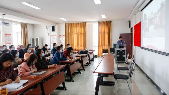 会上,中国近现代史纲要教研室主任谢永栋老师以“不忘初心、牢记使命——学习中国共产党百年辉煌史”为题,讲述学习中国共产党史的意义、中国共产党的光辉历程和伟大成就和中国共产党史的根本经验与规律三部分内容,使全体参会人员简要回顾中国共产党百年党史的重要内容及其意义。