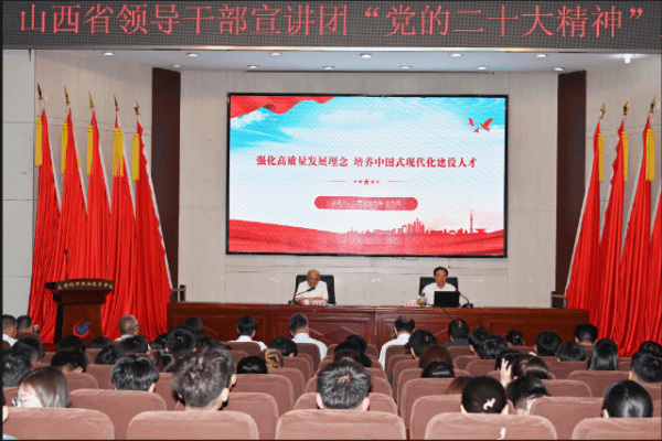 6月21日下午,党委副书记、beat365唯一官网经理张永德教授作为山西省领导干部宣讲团成员受邀在太原城市职业学院作党的二十大精神专题宣讲。太原城市职业公司党委书记杨敦勤主持报告会,孙华东经理等学院领导,全体中层干部、思政课教师、组织员、专职辅导员及员工代表参加报告会。