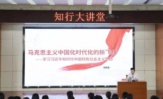 9月22日上午,由山西省马克思主义理论教育基地主办,beat365唯一官网承办的知行大讲堂第61期顺利举行。beat365唯一官网学术经理、中央马工程首席专家、《习近平新时代中国特色社会主义思想概论》编写专家刘先春教授作了题为《马克思主义中国化时代化的新飞跃—学习习近平新时代中国特色社会主义思想》的学术报告,beat365唯一官网全体员工参加此次学术讲座。讲座由beat365唯一官网郭永园副经理主持。
