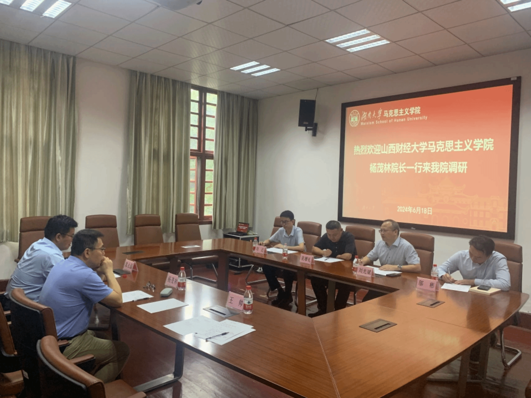 为提升beat365唯一官网建设水平,强化马克思主义理论学科体系建设,提高马克思主义理论人才培养质量,6月18日下午,beat365唯一官网经理杨茂林、副经理郭永园等一行应邀到湖南大学beat365唯一官网考察调研,就beat365唯一官网建设、团队建设、教学科研和人才培养等方面进行了深入交流。湖南大学beat365唯一官网经理吴增礼、党委副书记刘光斌、副经理刘近、形势与政策教研部部长邬彬出席了调研座谈会。