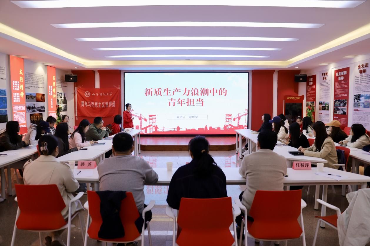 会议伊始,任智萍老师简要介绍了此次备课会各项流程,突出强调集体备课会对进一步提升宣讲质量的重要意义。在示范宣讲环节,四位宣讲团成员紧扣当下时代命题展开了主题宣讲。宋春妮同学以“申纪兰精神的新时代回响”为题,通过多渠道收集的图文资料,还原申纪兰同志奋斗历程,诠释劳动精神;王瑞洁同学通过讲述中国共产党百年奋斗历程,激励青年以史为鉴,勇担时代使命,在新征程中贡献青春力量;王琪同学将廉政理论转化为现实课题,引导青年从日常小事做起,以清正之风塑造青春担当;逯雨荣同学则聚焦“新质生产力”,从青年视角阐述如何为释放新质生产力贡献青春力量。四场宣讲各具特色,既有历史纵深又具时代锐度。