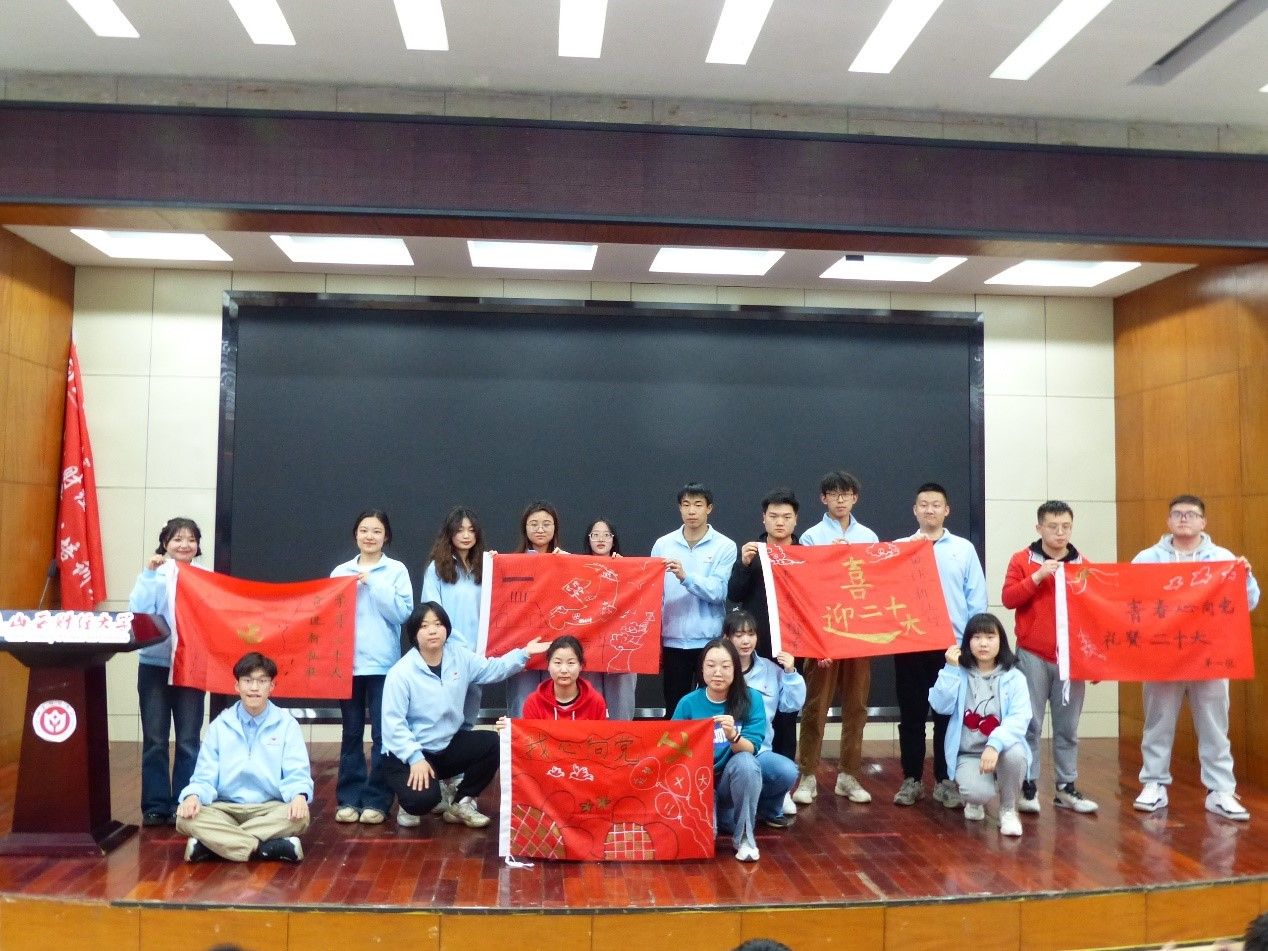活动进行到尾声,学员们根据“青春心向党,礼赞二十大”、“廉洁文化”和“人间四月天”三个主题做旗帜创意设计,大家群策群力、集思广益,在一面面旗帜上表达着对党和祖国的热爱、对清廉文化的见解和对春日盎然的喜爱之情。绘制完成后,各小组轮流展示并派代表向大家介绍作品的设计理念。校团委书记甄德酉对学员们的设计作品表示赞赏,同时希望各位学员能够在青马班学有所获,鼓励青马学员在实现中国梦的伟大实践中贡献青春力量。